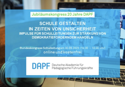 30.05.202529.–30. Oktober, Rom | In einer Welt des rasanten Wandels stehen Schulleitungen vor komplexen Herausforderungen – vom Klimawandel über technologische Umbrüche bis hin zu Krisen im Bereich der psychischen Gesundheit und...[mehr]